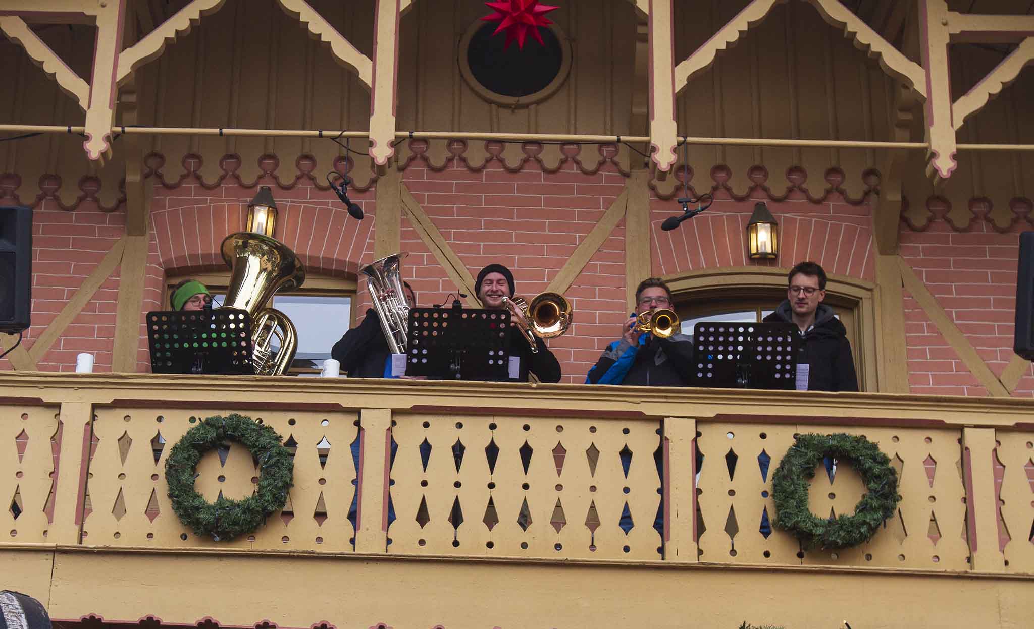 Musik vom Balkon - der Markt wurde weihnachtlich und musikalisch untermalt.
