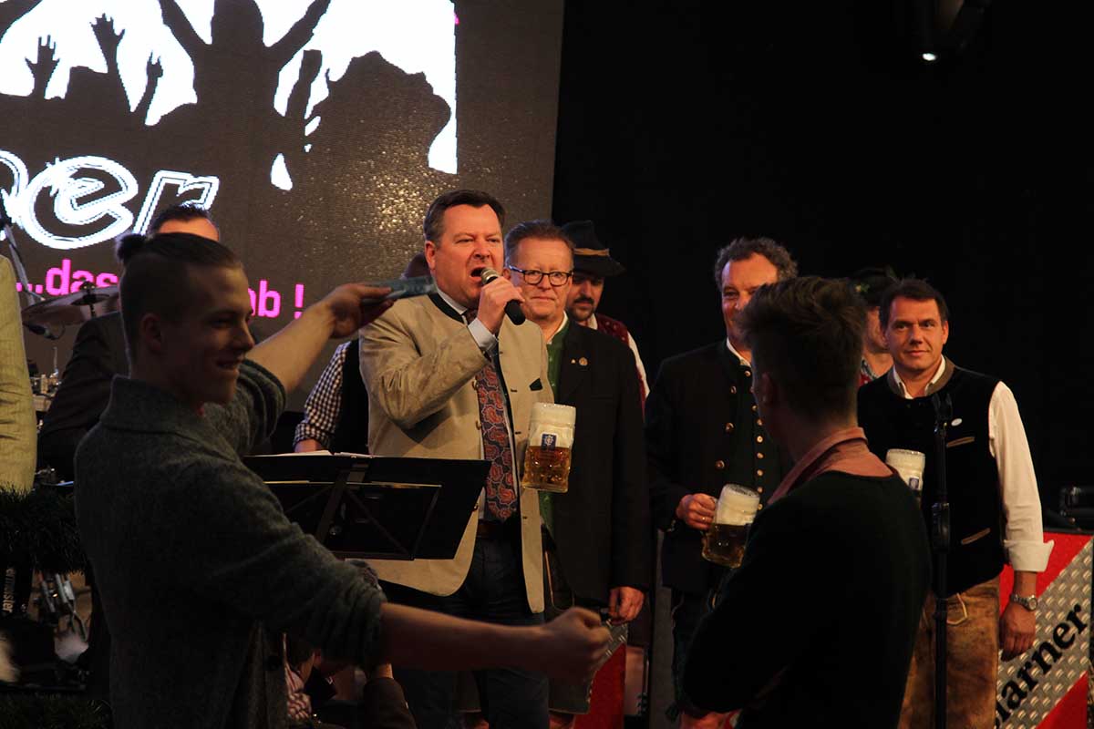 Prosit im Festzelt nach dem vierten angezapften Bier - und dem offiziellem Start durch Stadtrat Schlagbauer