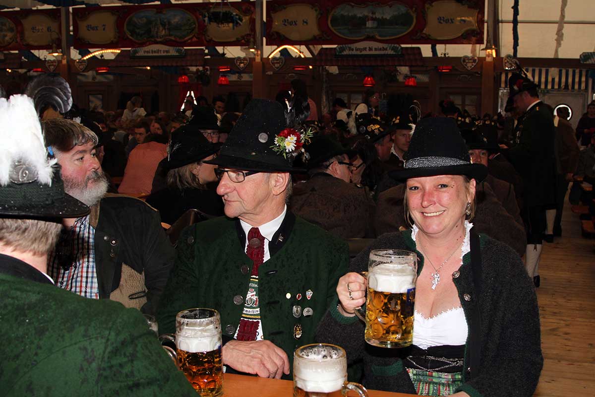 Die Böllerschützen nach ihrem regnerischen Start im Freien nun im warmen Bierzelt