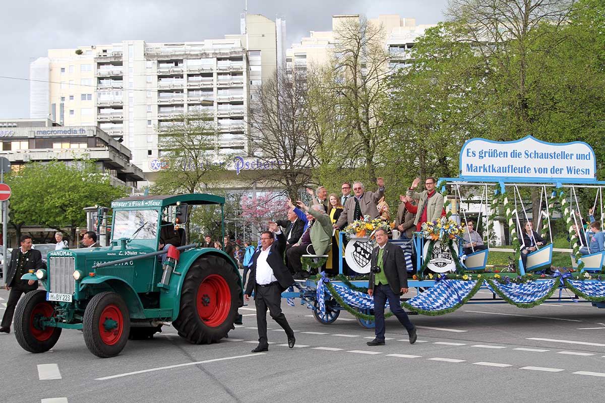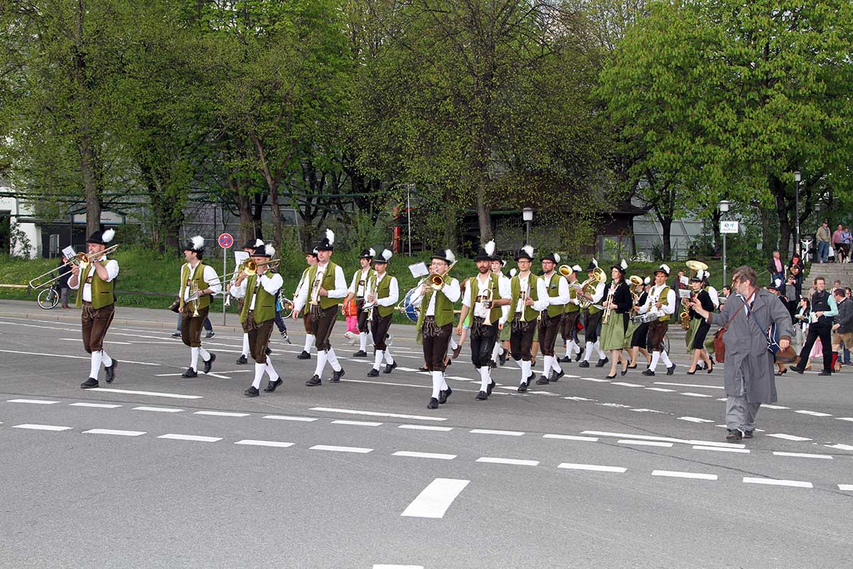 Der Sonntag 30.04.2017 steht ganz im Zeichen des Brauchtums. Eine Serenade am Haupteingang der Theresienwiese mit der Gebirgsschützenkompanie Waakirchen, Musik und Salutzug. In den Bierzelten spielen bayerische Musikgruppen auf. Auf dem Gelände des Frühlingsfestes treffen Sie auf den Alpenverband Chiemgau mit Goisl, Tänzern, Plattlern, Tanzlmusi. Der Isargau und Rupertigau mit Tänznern und Plattlern. Dem Florian Schelle, Rosserer mit Anspannung und Kutschen. Den alten Schaustellerzugmschinen und Orgeln.