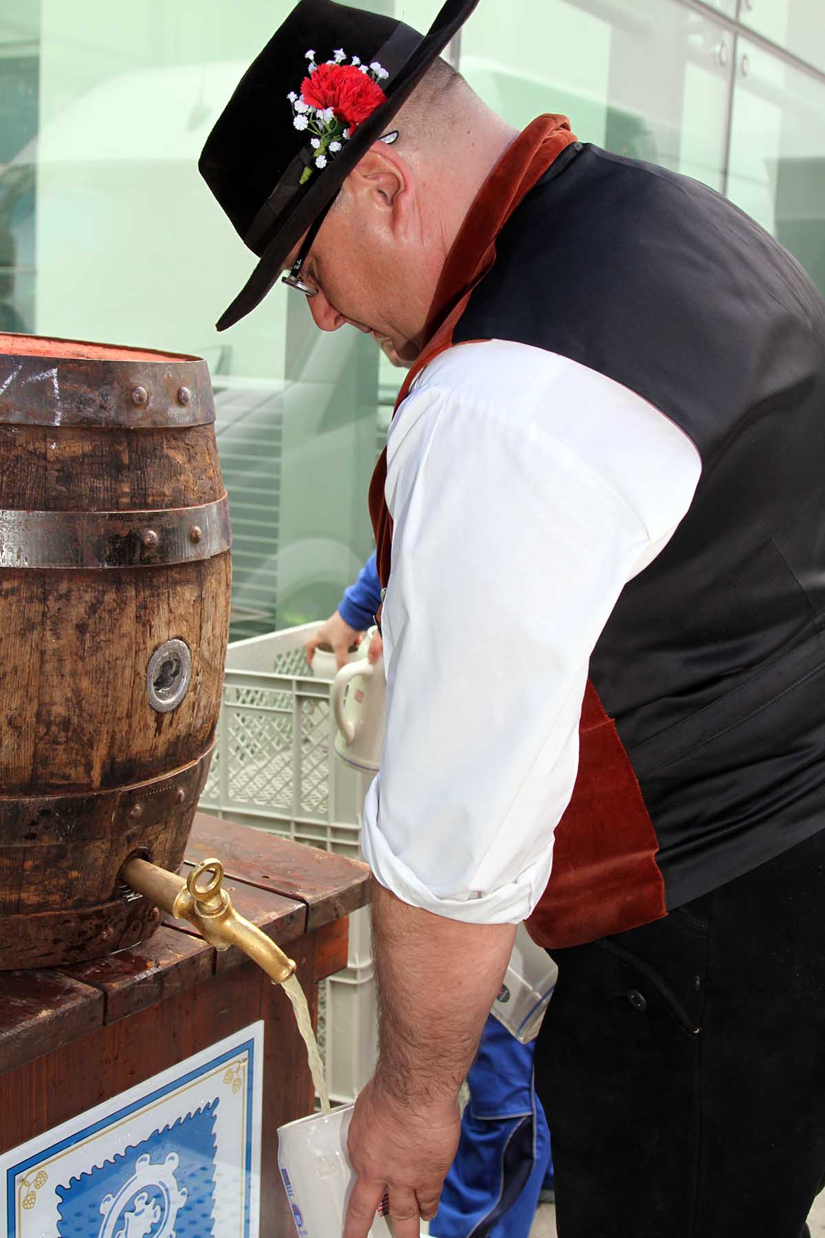 Das erste Faß für das Freibier wird angezapt