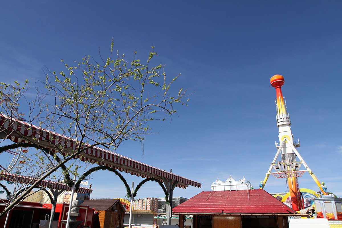 Vom 17. April bis 03. Mai 2015 präsentieren über 100 Schausteller abwechslungsreiche Unterhaltung für die Gäste des Frühlingsfestes. Ob Riesenrad, Autoscooter, Fadenziehen, Geisterschloss, Bogenschiessen, Bayerische Gastlichkeit, Bierzelte und der Münchner Weißbiergarten – es finden sich viele Vergnügungen für Volksfestfreunde.