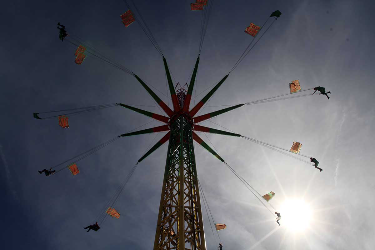 Viele Fahrgeschäfte locken - hier geht es hoch hinauf mit dem Kettenrad