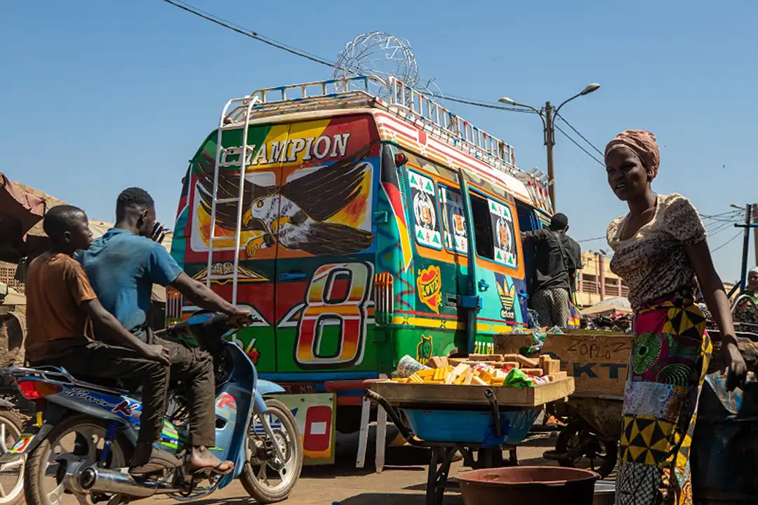 Mittels zeitgenössischer Straßenfotografie lädt Merci Maman. Straßenfotografie in Mali ein, in die farbenfrohe Welt der Sotramas einzutauchen. Wie kein anderes Verkehrsmittel prägen diese Kleinbusse die pulsierende Hauptstadt Malis. Von Busmalern kunstvoll gestaltet, ist jeder Sotrama ein Unikat und erzählt seine eigene Geschichte. In der Führung mit Dr. Stefan Eisenhofer wird auf dieses faszinierende kulturelle Phänomen eingegangen, welches eigens für die Ausstellung von fünf Mitgliedern des malischen Foto- Kollektivs Yamarou porträtiert wurde.