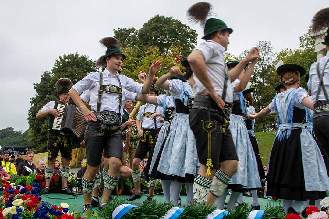 Der Tölzer-Schützenmarsch und Wiesnwirtesprecher Peter Inselkammer begrüße die Gäste. Premiere feierte Dr. Christian Scharpf, Referent für Arbeit und Wirtschaft, der selbst Klarinette spielte und beim Bozner Bergsteiger-Marsch mitwirkte. Beim kleinsten Breznstandl erinnerte Tanja Bauer an die Nachkriegszeit, als meist Kriegswitwen mit dem Brezenverkauf ein Zubrot verdienten – begleitet vom Kaiserjägermarsch. Die Chiemgauer-Trachtenformation präsentierte sich, bevor die Bühne für die Wiesn-Legende Georg Mayrhofer, den österereichischen „Wiesn-Schurli“, frei wurde. Seit 1983 dabei, erzählte er von seinem ersten Wiesnbesuch: „Ich weiß zwar nicht, wo das Paradies ist – aber jetzt bin ich nicht mehr weit davon.“ Zu seinen Ehren erklang der bislang ungespielte Radetzky-Marsch.