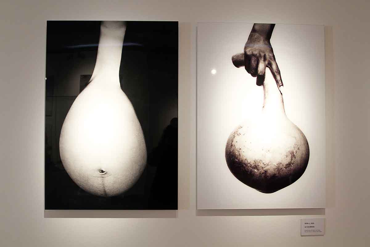 Ihre Werke mit Masken sind Sinnbild für das, was man von der Welt verbergen und was man offenbaren möchte. Kalebassen hingegen sind in vielen afrikanischen Mythologien das wichtigste Geschenk der Schöpfergottheit an die Menschen. Man kann aus ihnen essen und trinken, sie kommen bei der Reinigung zum Einsatz, als Transportbehaälter, Vorratsspeicher – sogar als Musikinstrument. Kalebassen begleiten Frauen ab ihrer Hochzeit ein Leben lang. Sie werden wohl behütet, repariert und in Ehren getragen. So wie jeder von uns seinen Lebensweg geht. Ihre Fotografie symbolisiert diesen Schatz Afrikas. Das Museum Fünf Kontinente stellt für die Fotoausstellung einige Exponate an Kalebassen aus ihrem Bestand zur Verfügung.